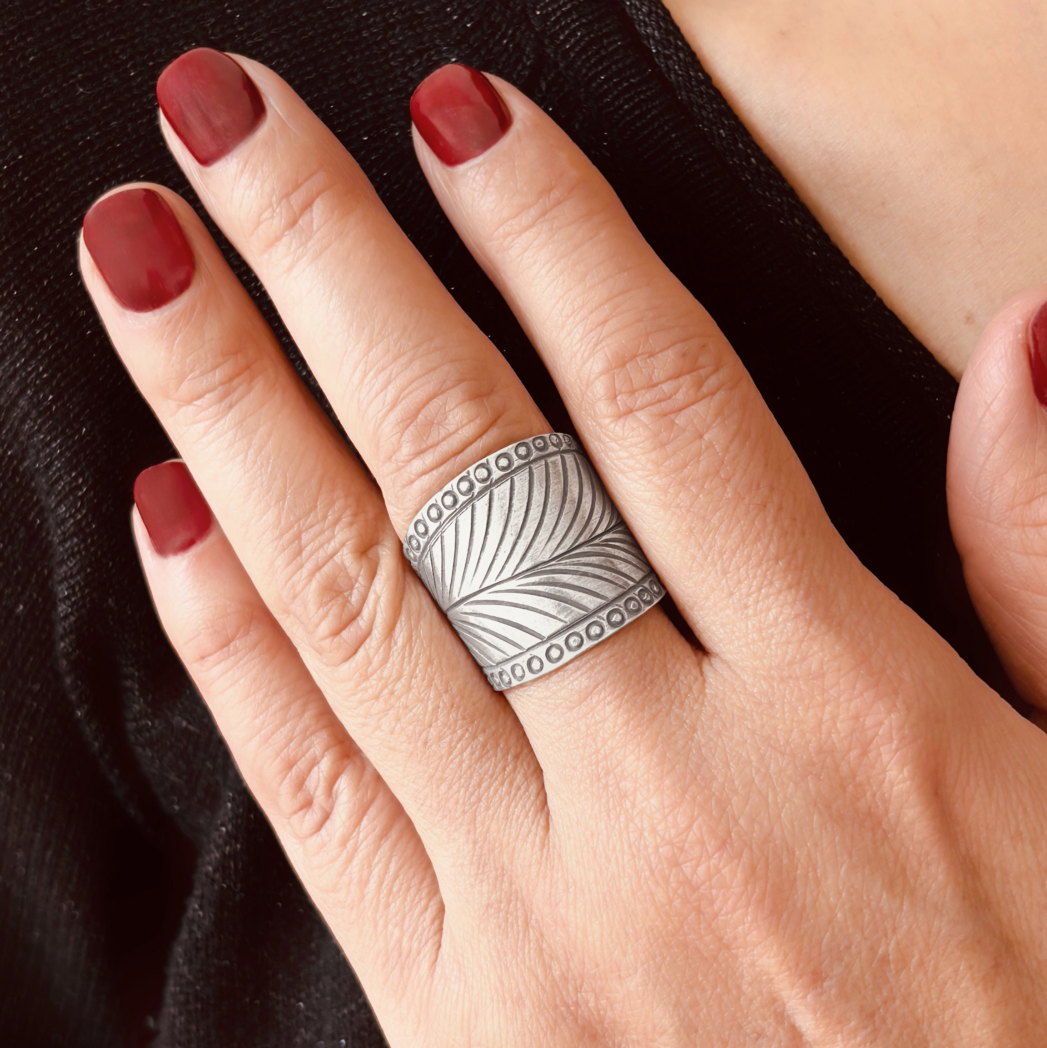 Anillo ajustable hecho a mano. Plata 925 envejecida.
