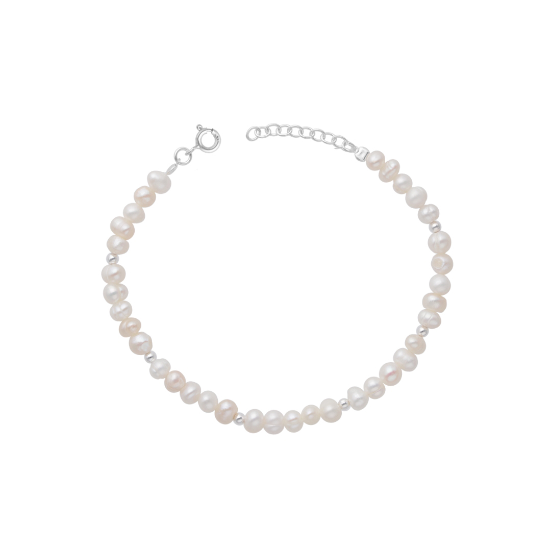 Pulsera de mujer. Perla de río con bolitas de plata 2.5 mm.